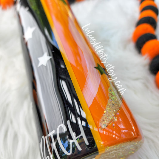 Jack-O-Lantern Glitter Tumbler - Halloween Tumbler - Ready To Ship