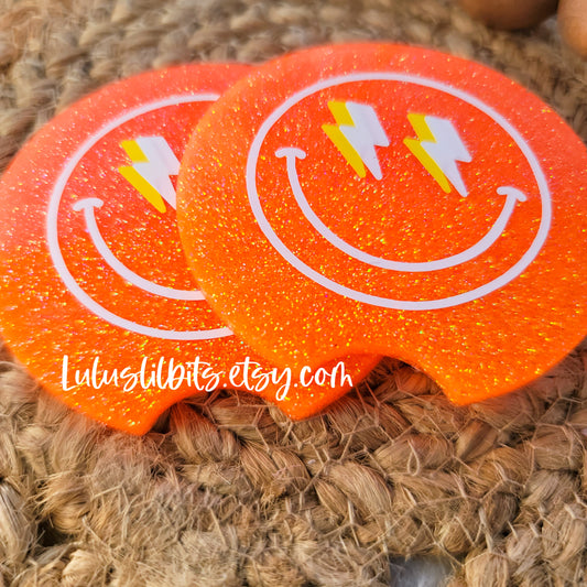 Retro Orange Glitter Smiley Face Coaster - Ready To Ship - Set of 2