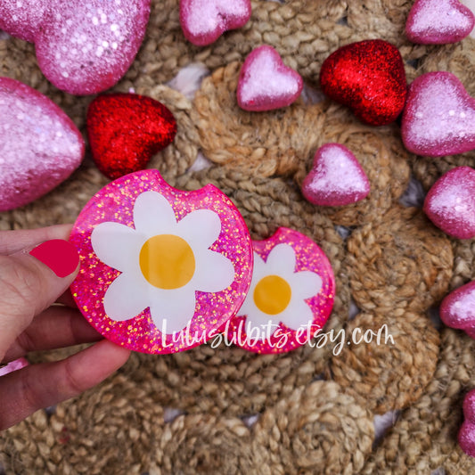 Pink Glitter Floral Coaster - Ready To Ship - Set of 2