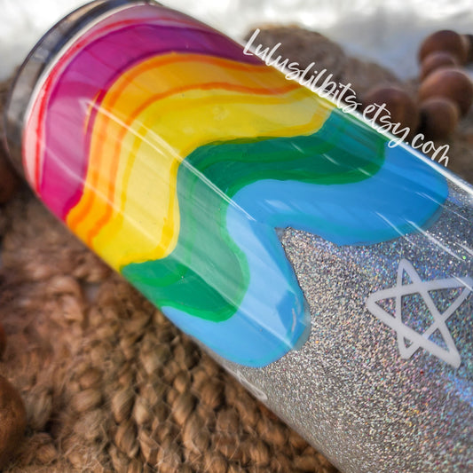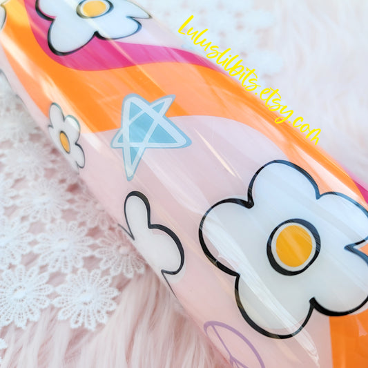 Pink Hand Painted Retro Tumbler - Retro Rainbow Tumbler - Ready To Ship