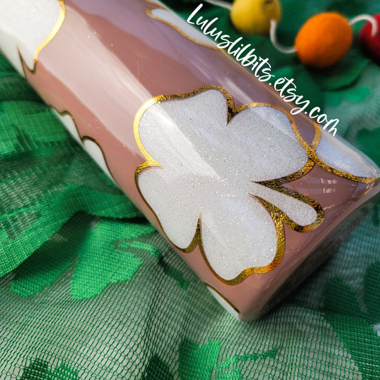 Pink Shamrock White Glitter Tumbler - St. Patrick's Day Tumbler - Ready To Ship