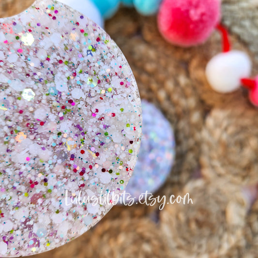 White Ink Glitter Car Coasters - Ready To Ship - Set of 2