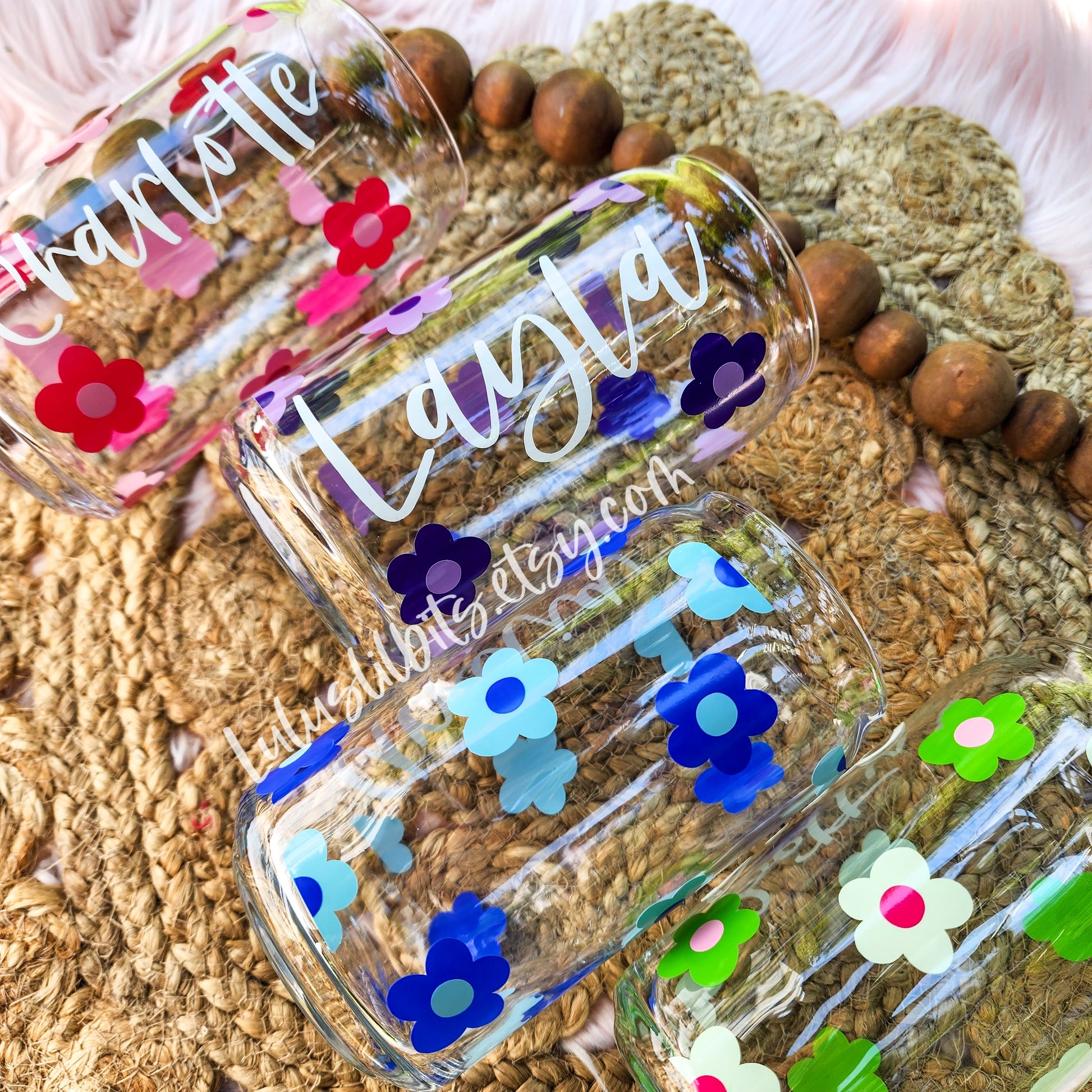 Personalized Name Pink Flower Glass Cup - Made To Order